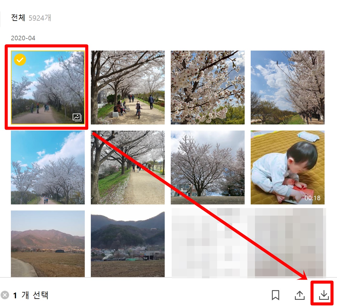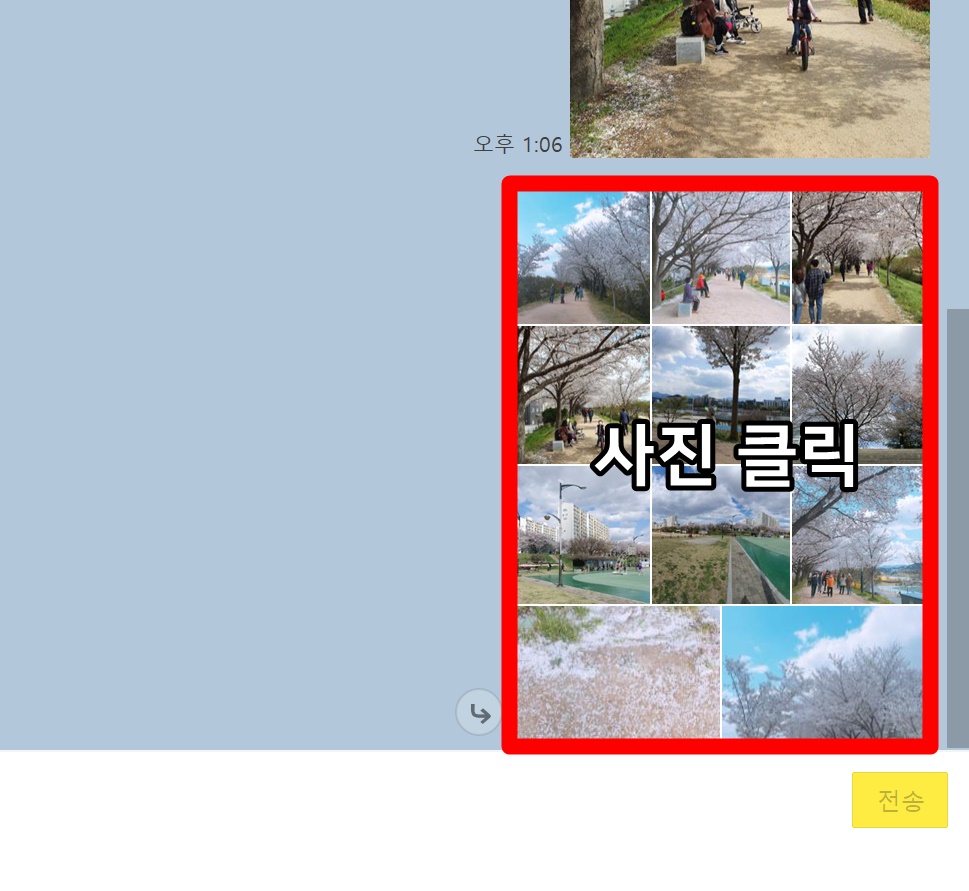 그렇다면 보내는 사람에 대해 알아 보았으니 받는 사람도 한번 알아봐야겠죠? 묶음 사진을 다운로드 저장하는 방법입니다. 사진이 묶음으로 오게 되면 묶음 사진 중 아무거나 클릭을 해주시면 됩니다.