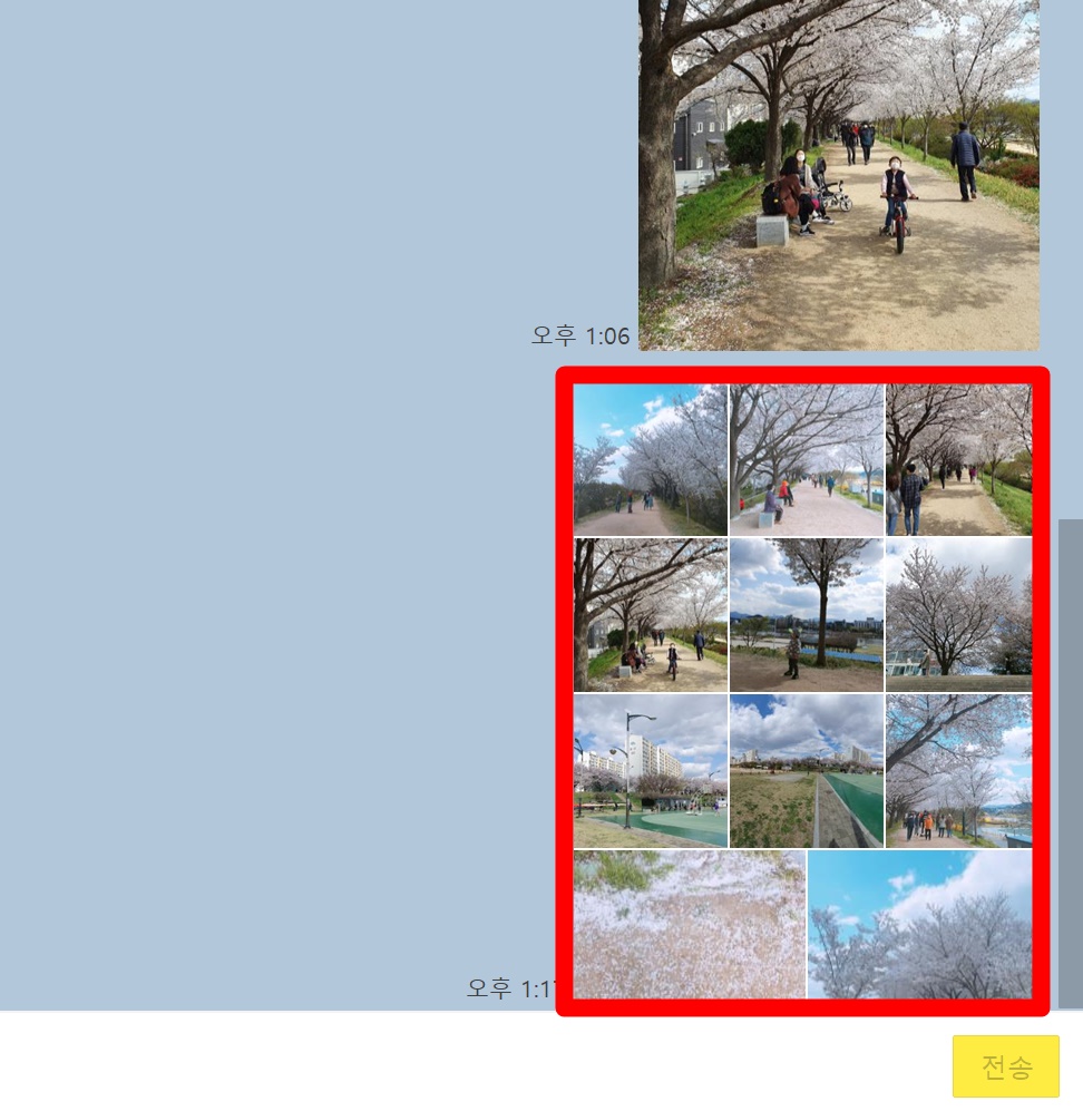 본인이 보내고자 하는 사진을 드래그해서 채팅창에 올려 주시면 됩니다.